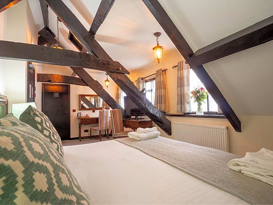 Black Boy Inn Executive Double - Located in the original Black Boy Inn. Spacious rooms with low beams a queen-size bed and private bathroom. Bathrooms have a bath and a shower head above. Amenities include a 42-inch flat screen LCD TV, desk, complimentary Wi-Fi, hairdryer, iron, ironing board, deep mattress, linen, towels, toiletries and a hospitality tray. Rooms are on various floor levels with stairs; we do not have any elevators.